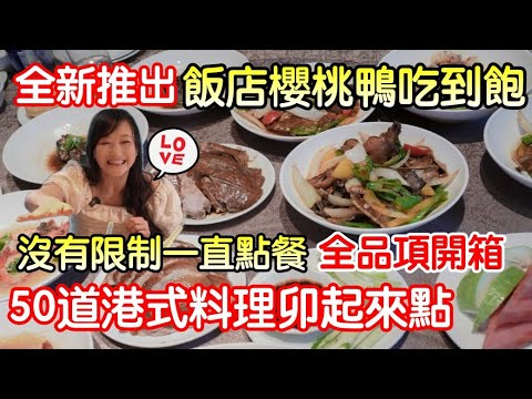 飯店新推出櫻桃鴨吃到飽|50道港式料理隨便吃,居然沒有限制點餐時間點餐時間,可以一直點,櫻桃鴨、干貝蘿蔔糕、鮑魚雞湯、鮮蝦腸粉、牛小排各式大菜港點,點心都有|桃園喜來登禧粵樓吃到飽期間限定